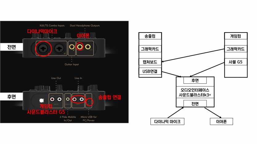 송출컴에 사운드블라스터k3+ 오디오인터페이스 제품을 사용중입니다.